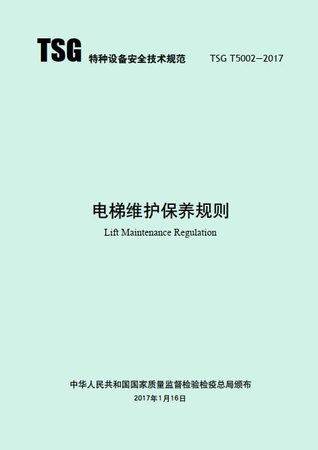《電梯維護(hù)保養(yǎng)規(guī)則 TSG T5002—2017》國家質(zhì)量監(jiān)督檢驗(yàn)檢疫總局