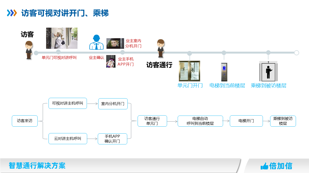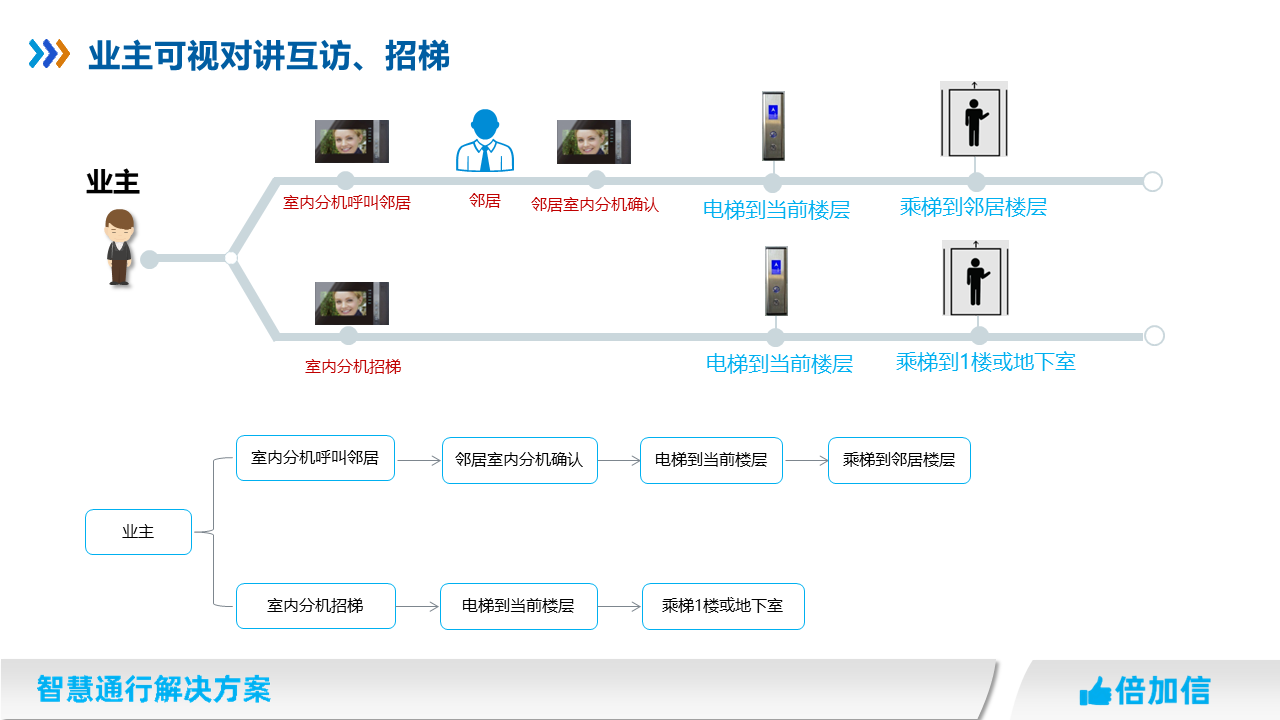 5、住宅項(xiàng)目訪客可在可視對講呼叫業(yè)主,實(shí)現(xiàn)呼梯聯(lián)動招梯和乘梯;