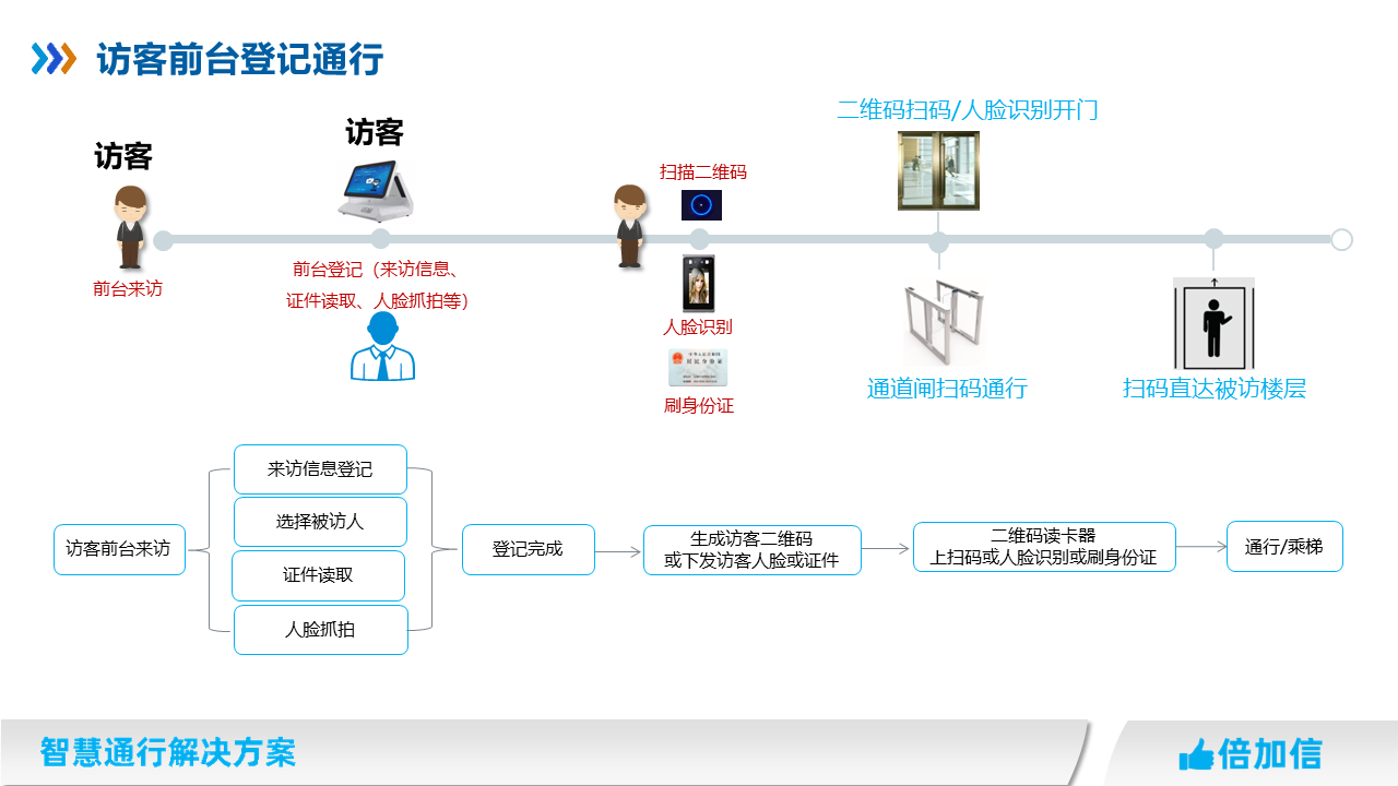 7、同時選配設(shè)備可支持其他多種形式訪客通行,如身份證讀卡、臨時訪客卡、訪客密碼等等通行;