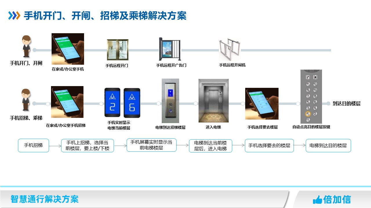 在住宅小區(qū)、寫字樓、企事業(yè)單位等辦公場所,可以遠(yuǎn)程開門、遠(yuǎn)程開閘實(shí)現(xiàn)訪客通行,同時(shí)固定人員出門乘梯往往等電梯需要耗費(fèi)不少時(shí)間,可以通過手機(jī)招梯,在手機(jī)端實(shí)時(shí)查看電梯當(dāng)前樓層,即將到達(dá)時(shí)候再出門乘梯,節(jié)省乘梯等待時(shí)間。