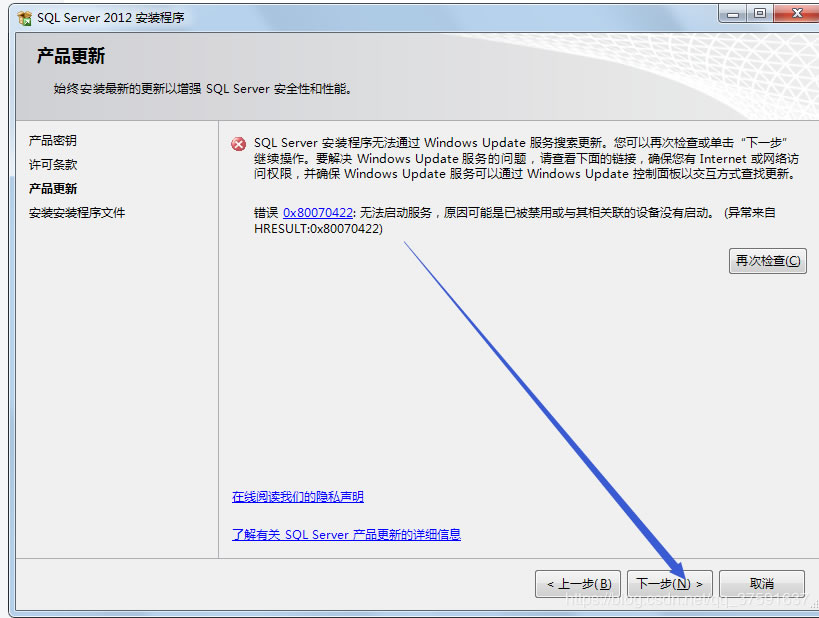 即使出錯,也點擊下一步