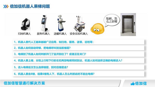 在一些高層建筑或是人流密集區(qū)域的電梯,由于使用頻繁,可能會存在電梯故障或事故的風(fēng)險。而機(jī)器人倍加信梯控的作用,正是在這些情況下起到了保護(hù)和預(yù)警的作用。
