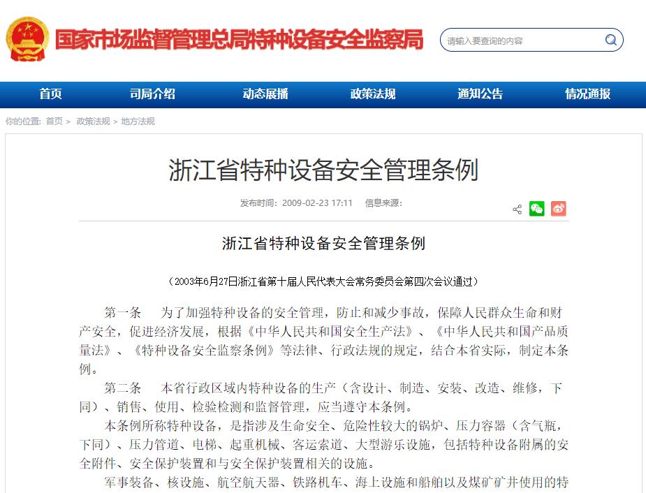 浙江省特種設(shè)備安全管理?xiàng)l例