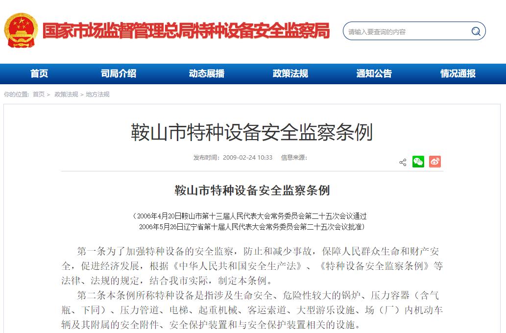 鞍山市特種設(shè)備安全監(jiān)察條例
