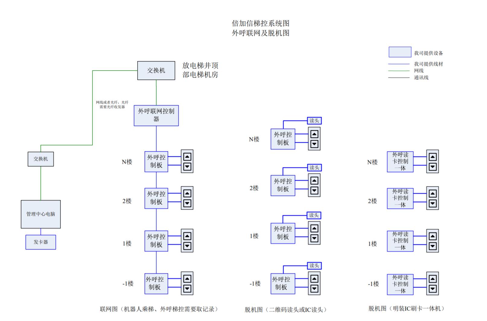 C. 如果是機(jī)器人乘梯,則不需要刷卡讀頭,直接外呼梯控控制板即可,還需要倍加信外呼聯(lián)網(wǎng)控制器,與機(jī)器人聯(lián)網(wǎng)通訊;